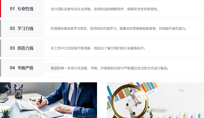 我們提供的財務服務,都是基于多年創(chuàng)新經(jīng)驗總結(jié)出的科學流程和做賬標準,保證服務精細,數(shù)據(jù)精準、專業(yè)高效。